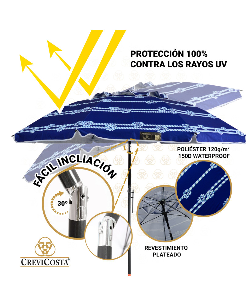 Todas estas características hacen que nuestras sombrillas sean unas de las mejores del mercado. Y para que las conserve mejor le damos un consejo de limpieza: aplicar agua dulce (nunca salada ni agua de mar) con un trapo húmedo y jabón neutro. No usar productos abrasivos.