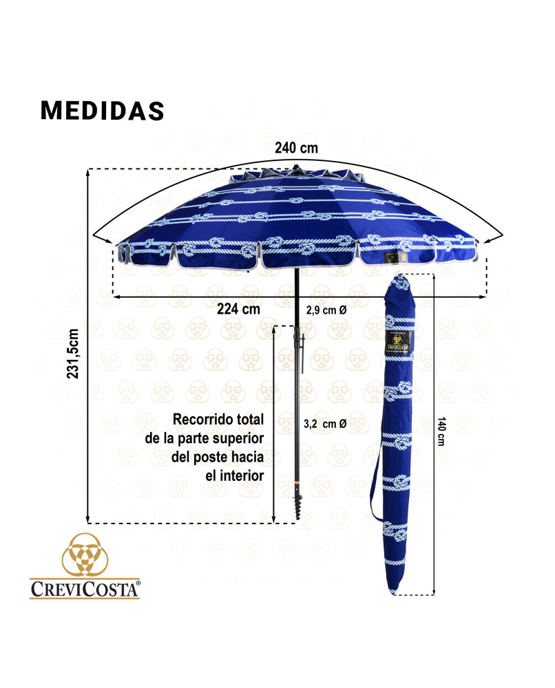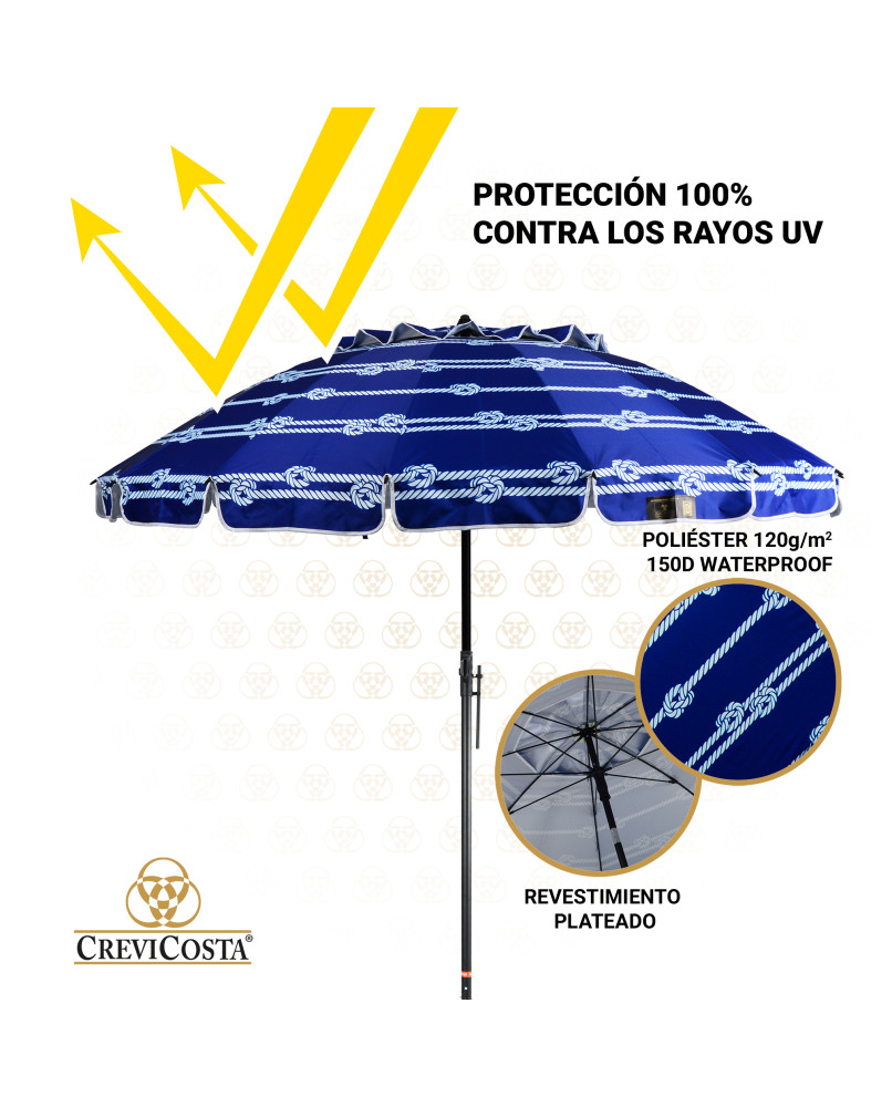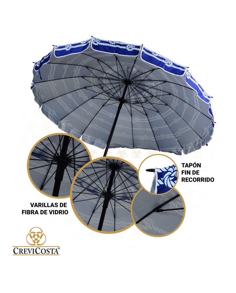 NÁUTICA 240 cm con Espiral y Poste de Recorrido Total. 16 Varillas. PROTECCIÓN Total contra los Rayos UV