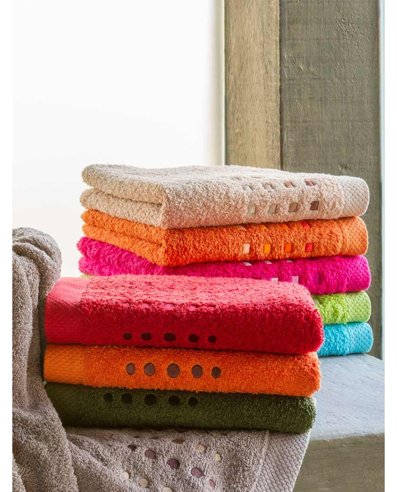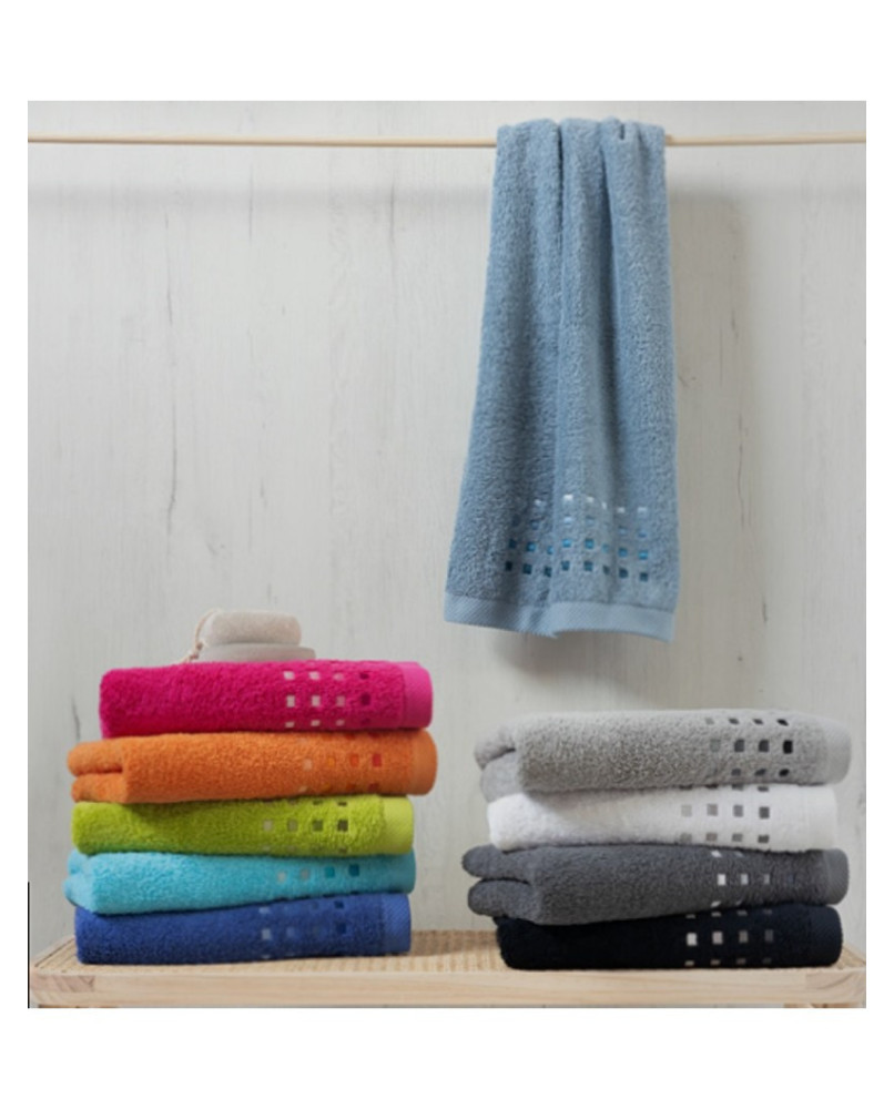 Toalla de rizo de 550 gr. de algodón 100%. Disponible en 6 colores alegres y primaverales. Muy esponjosa, caracterizada por su suavidad natural ya que no usamos suavizantes en su producción lo que ofrece una alta absorción desde el primer uso. Para mantener su aspecto recomendamos que no use suavizantes en el lavado. Producido de forma respetuosa con el medio ambiente en nuestras fábricas certificadas