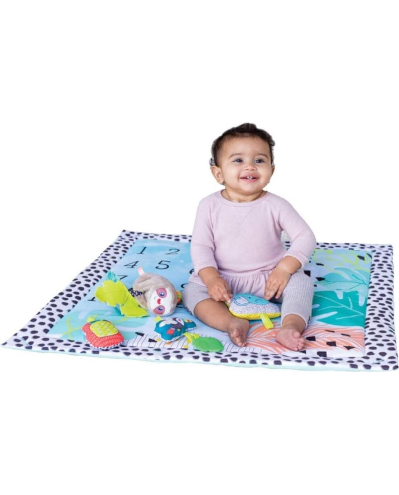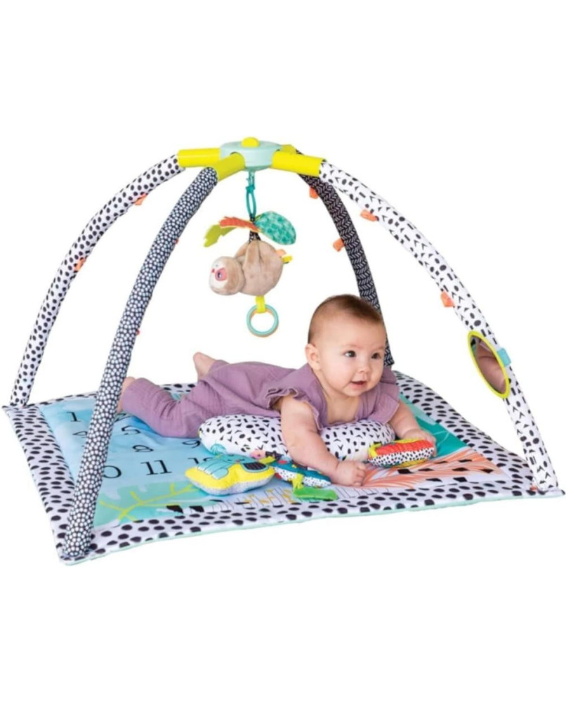 Gimnasio Twist & Fold Gym 4 en 1 Este colorido gimnasio de actividades está repleto de excelentes características, que incluyen un refuerzo para el tiempo boca abajo, un espejo para mirar y mirar, una alfombra de juegos de colores brillantes y cuatro amigos de peluche. Doble los brazos del gimnasio con un simple giro de muñeca utilizando nuestra exclusiva tecnología Twist & Fold. ¡Es el complemento perfecto para grandes aventuras o para convertir pequeños espacios en una gran diversión! ¿Qué le pide a su producto? Descubra todas sus características y funcionalidades. Gimnasio y alfombra interactiva Fácil de plegar para transportar Cuenta con divertidas figuras desmontables con material texturizado Móvil musical giratorio ayuda el seguimiento visual Cuenta con un espejo para usar el cualquier parte del Gym Fomenta el gateo el agarre y la exploración táctil Colores de alto soporte visual estimulación y seguimiento 4 juguetes sensoriales mordedor sin bpa espejo juguetes arrugados sonajeros Uso desde recién nacidos a 36 meses 4 formas de uso Medidas producto armado 70 cm por 70 cm