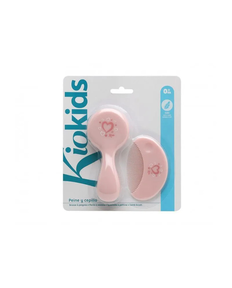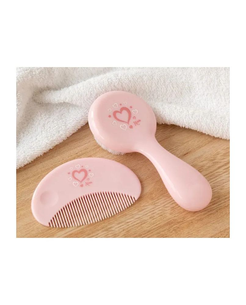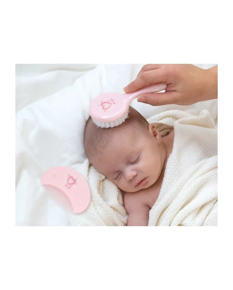 Set Peine y Cepillo ROSA Este set de peine y cepillo es perfecto para el cabello de tu bebé. El cepillo en nylon es extra suave para la piel y el cabello delicados de los bebés, y su mango resulta cómodo de sujetar para facilitar su uso. El peine es ideal para hacerle el peinado a la moda y que siempre vaya guapo/a. Son prácticos en el día a día en la higiene del bebé para cada baño, o cada vez que quieras que salga perfecto a pasear. Pertenece a nuestra preciosa colección Soft Nordic, de colores suaves y pasteles. Perfecto para la canastilla y llevar a cualquier sitio. Está recomendado para niños de +0 meses. Colección Soft Nordic