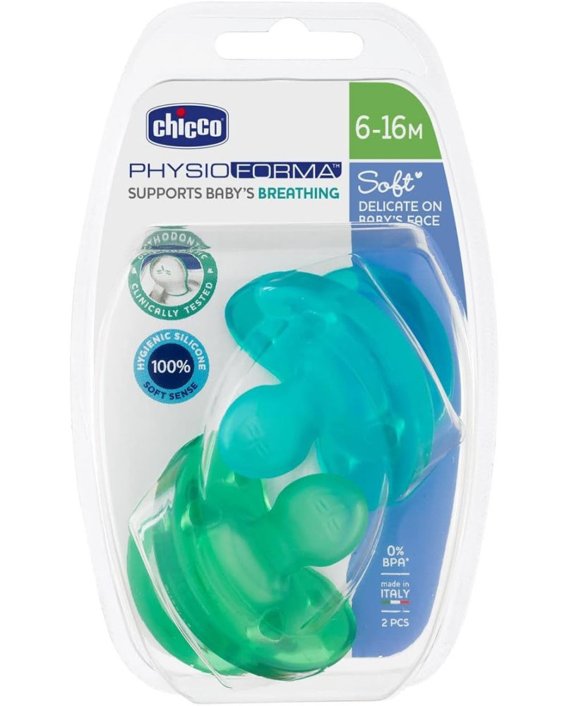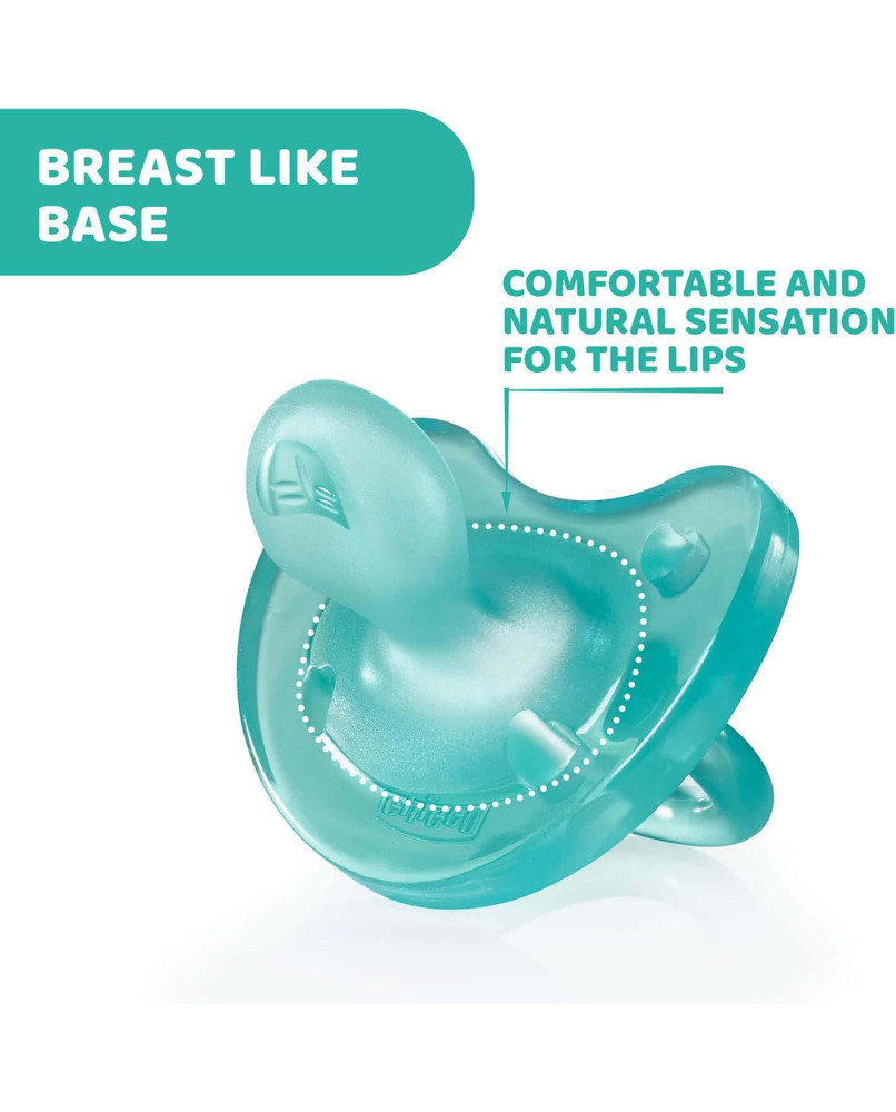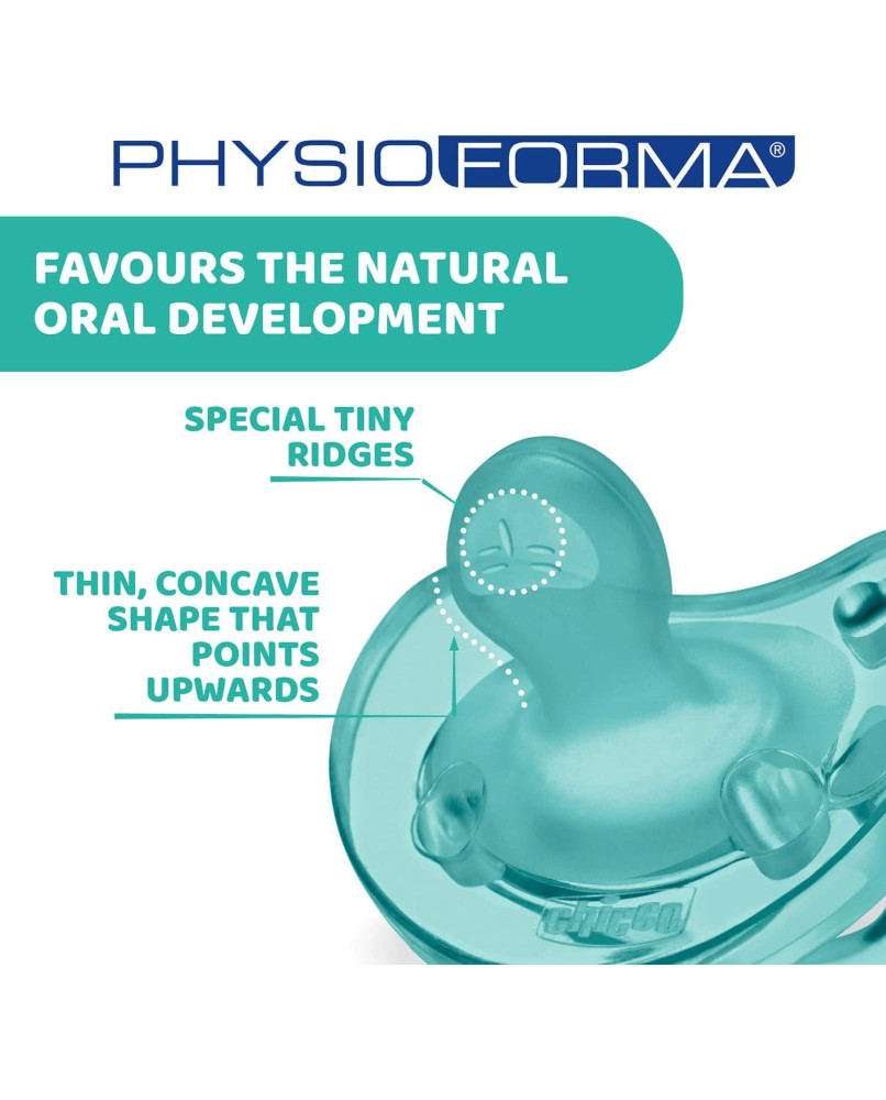 TECNOLOGÍA PHYSIOFORMA: la innovadora tetina de los chupetes se adapta a las funciones fisiológicas de la lengua, favorece activamente el correcto desarrollo de la boca y facilita la respiración del bebé. DE UNA SOLA PIEZA: los chupetes Physio Soft de están formados de una sola pieza de silicona, sin escudo rígido, que proporciona un acabado suave y delicado con la piel del bebé y también se pueden usar a la hora de dormir porque no deja marcas del escudo en la cara del niño. BASE REDONDA: la base suave y redondeada de la tetina del chupete permite que los labios se cierren de forma natural; la forma es similar a la del pecho materno y estimula la succión del bebé. TETINA DE SILICONA: la tetina del chupete Physio Soft está realizada 100% en silicona suave, elástica, resistente e higiénica, que asegura una sensación de comodidad durante la succión. AGUJEROS DE VENTILACIÓN: los agujeros de ventilación de estos chupetes permiten el paso del aire y reducen el estancamiento de la saliva, que normalmente causa irritación en la piel del bebé.