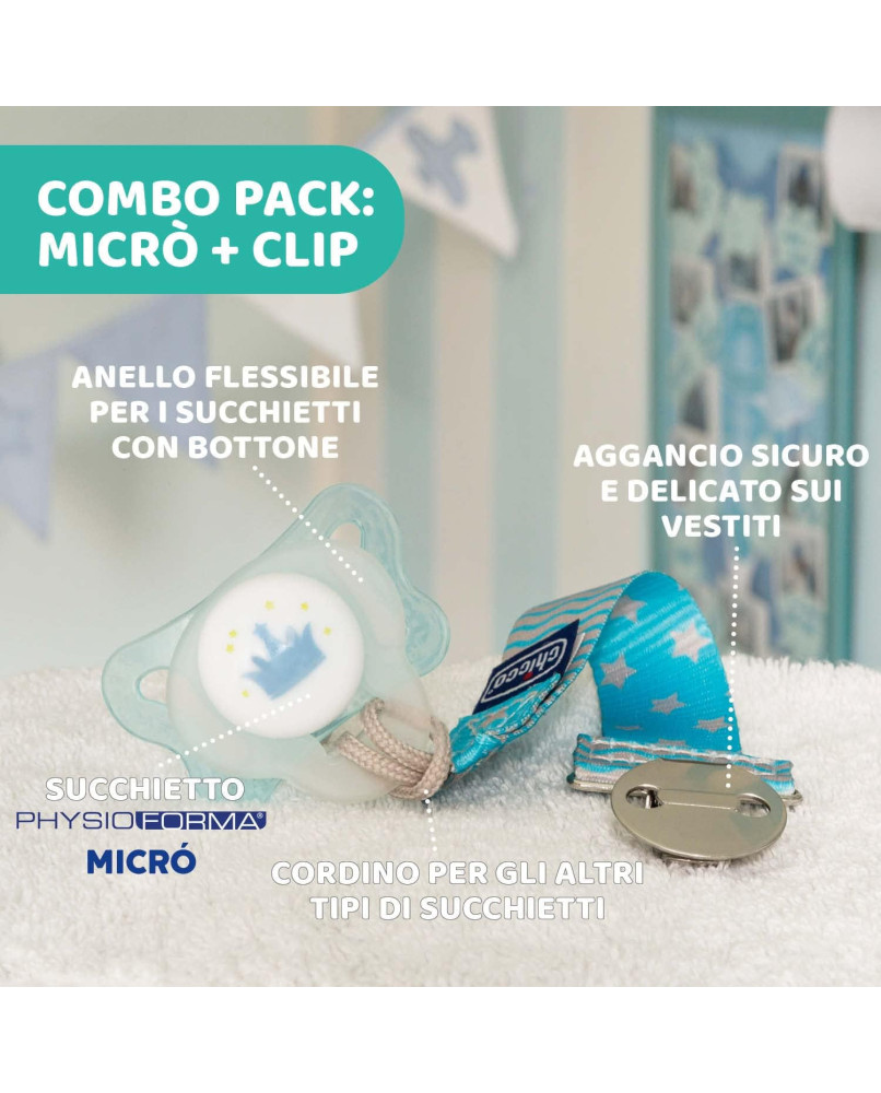 Pack chupete Micrò 02m con clip Fashion Azul. Los adecuados productos de bebé al adecuado. Nos preocupamos para que el crecimiento de tu bebé siempre sea el adecuado. Pack chupete Micrò 02m con clip Fashion Azul Los mejores productos de bebé al mejor precio. Economía y calidad unidas de la mano. Nos preocupamos para que el crecimiento de tu bebé siempre sea el mej