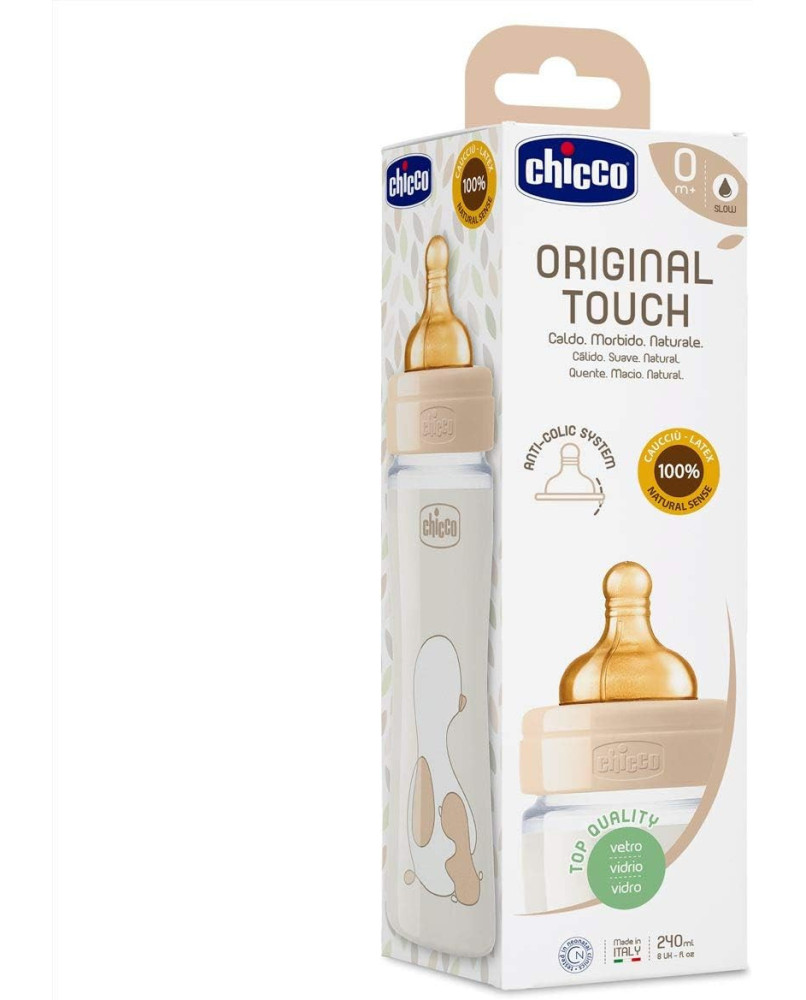 Los biberones anticólicos ORIGINAL TOUCH están equipados con una tetina cálida, suave y natural, hecha de látex 100% natural, y el emblemático biberón de vidrio borosilicato (material de cristal grueso), resistente a los cambios bruscos de temperatura y al calor, y son más higiénicos e indicados para la esterilización. La tetina de flujo lento es ideal para las primeras tomas durante los primeros meses del recién nacido. El probado sistema anticólico del biberón Original Touch evita ingerir aire para reducir la irritabilidad, las regurgitaciones y los cólicos después de la toma.* Probado en 2015 con 200 bebés y madres en Italia. Tamaño: 240 ml. Tetina flujo lento. Color: gris. BIBERÓN ORIGINAL TOUCH : las tetinas de esta línea de biberones están hechas de látex 100% natural, suave y resistente. Proporcionan una sensación natural que recuerda a la piel y el pecho de la madre. VÁLVULA ANTICÓLICOS: diseñada para evitar la ingestión de aire, ayuda a reducir la regurgitación y los cólicos después de la toma. Efecto anticólicos* probado. PRÁCTICO BIBERÓN DE PLÁSTICO: el clásico biberón de plástico ligero de es práctico y ergonómico. El cierre seguro evita las fugas. La boca ancha facilita el llenado y la limpieza. TETINA DE LÁTEX 100% NATURAL: las tetinas de látex 100% natural de están fabricadas con látex extraído del árbol Hevea Brasilienis, sin colorantes añadidos. TETINA AJUSTABLE 3 EN 1: ajusta la tetina del biberón anticólico para que la marca del flujo deseado quede bajo la nariz del bebé: #1: flujo lento #2: flujo medio #3: flujo rápido.