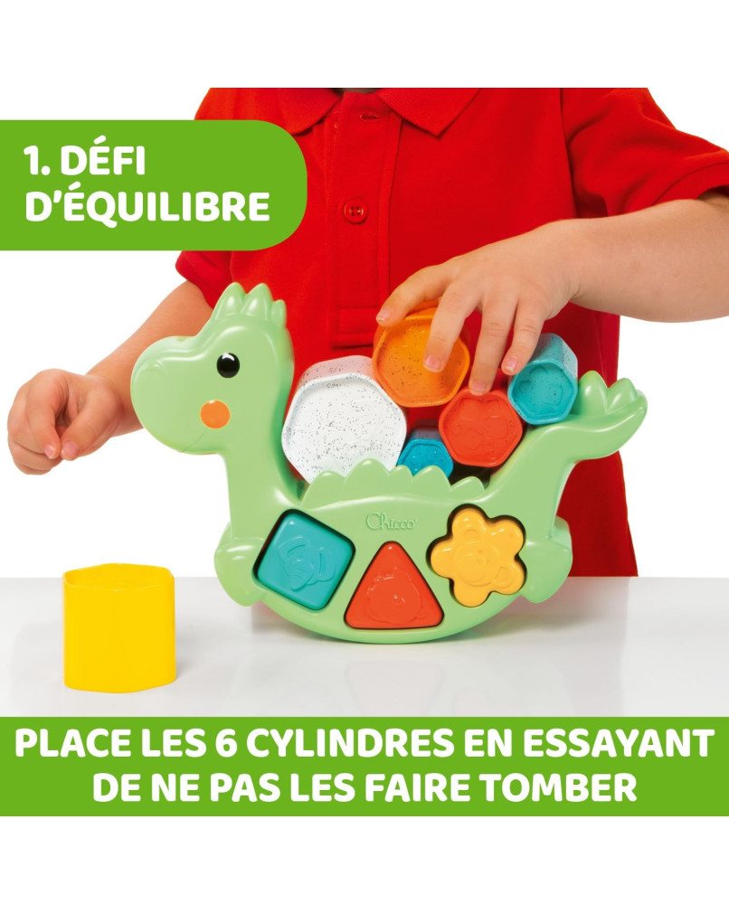 JUEGO DE EQUILIBRIO: Dino Lino Eco+ es un juguete 3 en 1 realizado con materiales reciclados y diseñado para ayudar a los más pequeños a desarrollar sus habilidades cognitivas y de coordinación manual. 3 ACTIVIDADES DIFERENTES: Juego de encajables, cilindros apilables y juguete de equilibrio. CLASIFICADOR DE FORMAS: Los niños y niñas tendrán que colocar las 3 figuras en los agujeros correctos del cuerpo de Dino. JUGUETE APILABLE: Coloca los 6 cilindros unos encima de otros siguiendo el orden de más grande al más pequeño para evitar que se balanceen y se caigan. COLECCIÓN ECO+: lanza su colección de juguetes sostenibles para ayudar a cuidar del planeta. Realizados con plásticos reciclados, bioplásticos y cartón 100% reciclable.