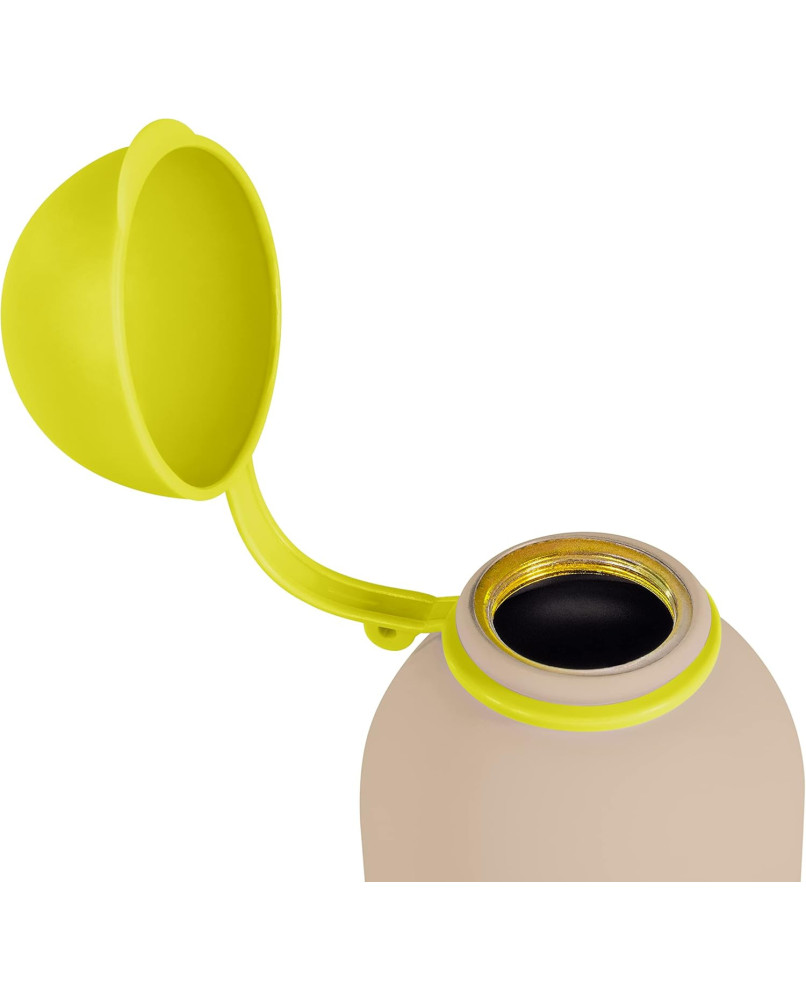 Materiales de una calidad excepcional Están fabricadas en acero de 18/8 (acero 304) en el interior, que presenta muy baja conductividad térmica y muy buena resistencia a las altas temperaturas, el más adecuado para la conservación de alimentos. Reutilizable y duradero Su fabricación en acero inoxidable permite prolongar su uso y reutilización en el tiempo, contribuyendo a la sostenibilidad del medioambiente. Así los papás podrán enseñar a los más pequeños la importancia de cuidar y respetar el mundo en el que van a vivir. Mantienen la temperatura de los líquidos durante más tiempo Las botellitas de preservan las bebidas frías o calientes durante más tiempo gracias a su pared de acero inoxidable, para que los más pequeños de la casa estén bien hidratados en el cole, de excursión y en cualquier parte. Divertido diseño exterior Con atractivos colores, un divertido y original diseño y suave tacto gomoso exterior, les encantarán. ¡Personalízala con tu nombre! Las botellitas incluyen una etiqueta con divertida forma de hoja para personalizarla con nuestro nombre. Boquilla limpia en cualquier lugar y sin derrames Cuentan con boca ancha para rellenar y limpiar con facilidad. Además incluyen tapón antigoteo con arandela para evitar que se pierdan y protegen de derrames indeseados durante su transporte. Sin bisfenol A 100% libres de BPA. Botella de acero de EcoFriendly de 400ml, libre de BPA. Ideal para el cole o la guarde: reutilizable, resistente y duradera. Boca ancha para rellenar y limpiar con facilidad y tapón antigoteo. Mantiene la temperatura durante más tiempo ya que está fabricada en acero de gran calidad. Personalízala con tu nombre: incluyen una etiqueta en forma de hoja para poner el nombre.
