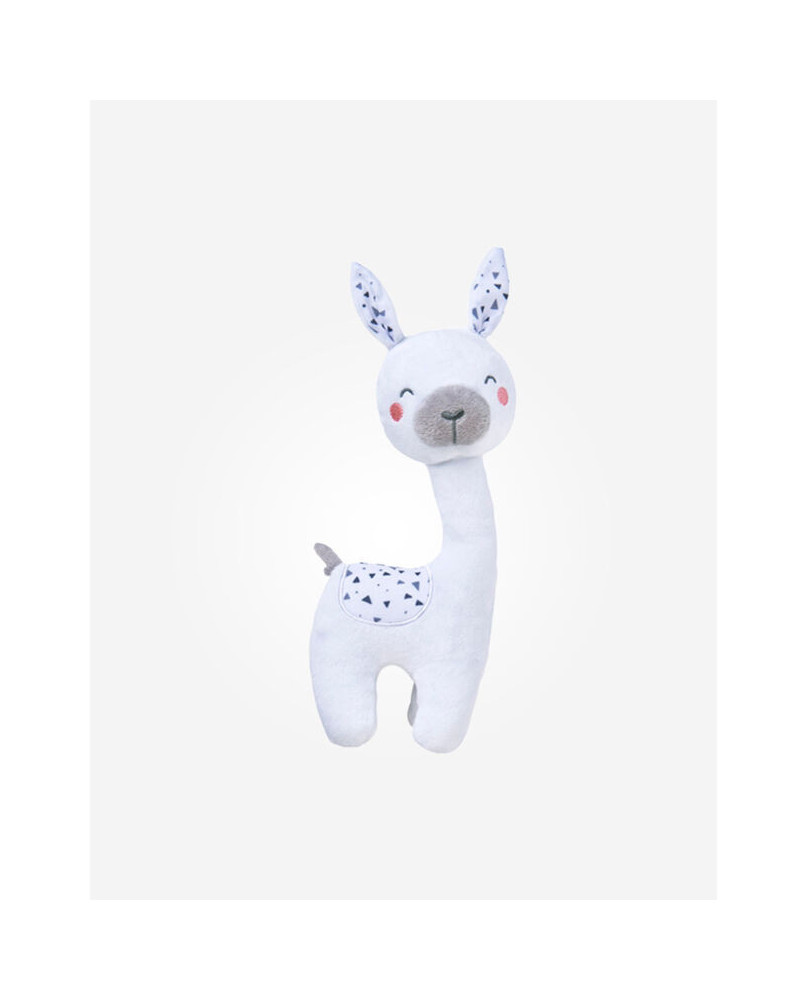Peluche alpaca Sara 25 cm La alpaca de peluche Sara de 25 cm es la amiga perfecta para los niños que buscan comodidad, diversión y compañía. Con su suave textura, es ideal para acurrucarse y jugar. Además, contiene características especiales que estimulan los sentidos del bebé y le brindan horas de diversión. El peluche de alpaca es seguro, suave y tiene el tamaño perfecto para las manitas de los pequeños. Características principales del juguete: Exterior suave : hecho de 100% poliéster, agradable al tacto y seguro para los niños. Extremidades largas : diseñadas para un fácil agarre, adecuadas para manos de niños pequeños. Estimulación sonora : Hay una lámina retráctil en las extremidades que produce un sonido divertido cuando se aprieta. Sonajero incorporado : En el cuerpo de un juguete que fomenta la exploración y el juego del niño. Seguridad : El producto cumple con estrictos estándares de seguridad de la UE y EE. UU. Especificaciones del producto: La altura del juguete : 25 cm. Material : Exterior de poliéster afelpado con estructura interior segura. Edad apropiada : 0+ meses. Mantenimiento : Fácil de limpiar con un paño húmedo. Ventajas de la alpaca de peluche: Desarrolla la motricidad fina del niño. Estimula la percepción sensorial con sonidos especiales. La textura suave calma y proporciona una sensación de seguridad. La alpaca de peluche es el regalo perfecto para recién nacidos, bebés y niños que adoran los juguetes lindos e interactivos. ¡Sin duda se convertirá en su compañero favorito para jugar y descansar!