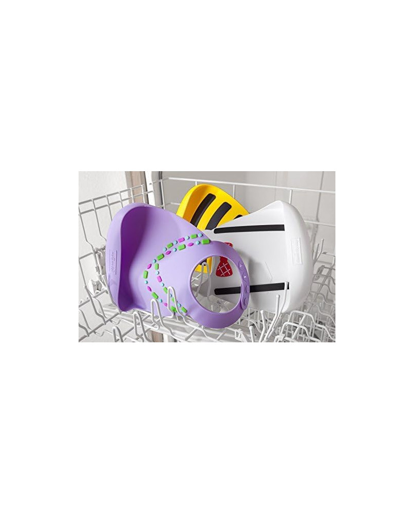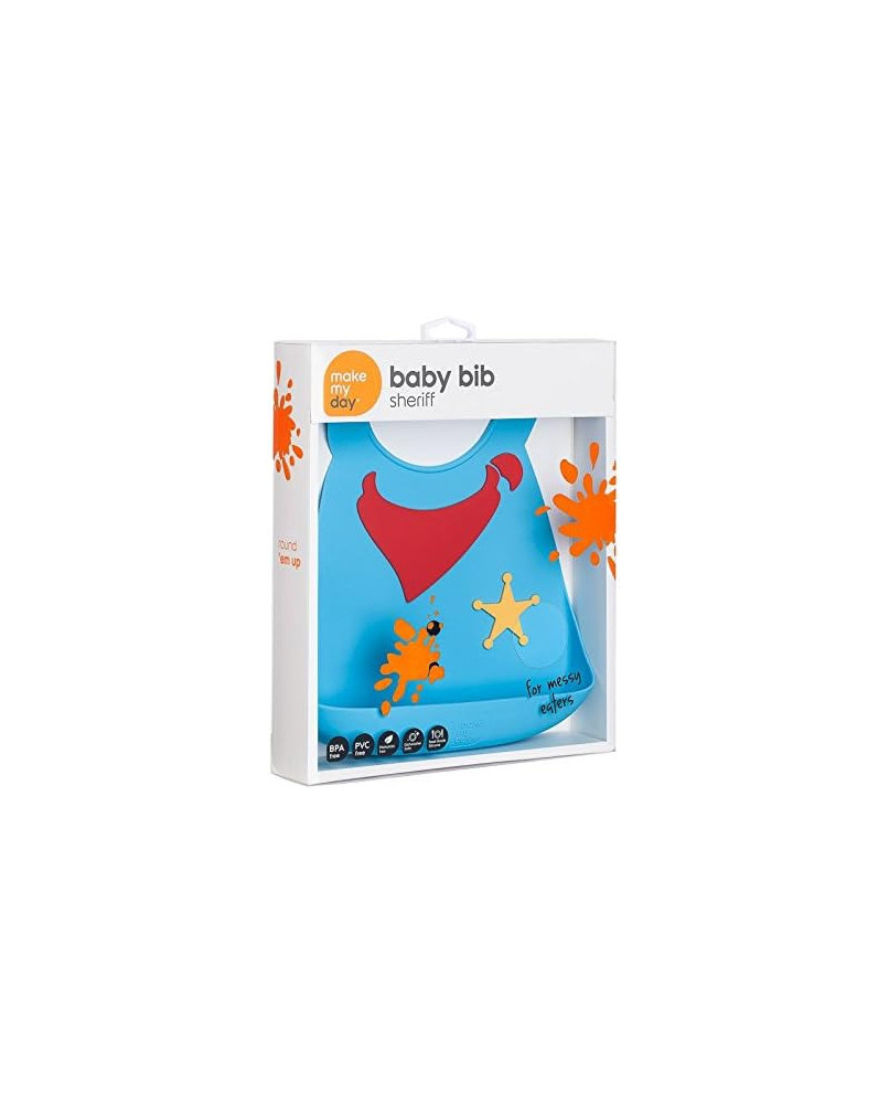 Los baberos Make My Day están fabricados en una suave silicona y libres de BPA. Estos elegantes baberos son también muy funcionales y se pueden utilizar una y otra vez. Todos los modelos son resistentes a las manchas y se pueden lavar en el lavavajillas. El babero de bebé tiene una correa ajustable que se adapta a distintos tamaños, desde los 6 meses hasta los 3 años de edad.