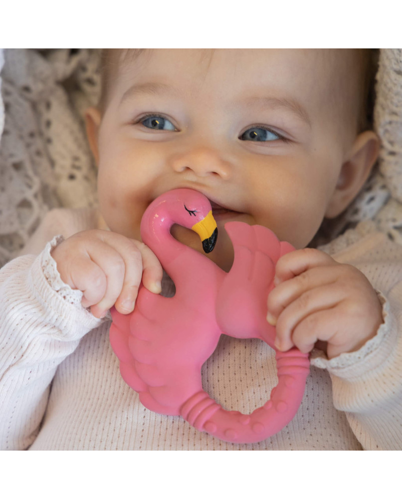 ¡Bienvenido al flamenco que te hace querer desplegar tus alas y volar hacia un mundo de juego natural e imaginación! El flamenco Natruba es fácil de agarrar para las manos de los más pequeños y un alivio perfecto para las encías irritadas. El flamenco tiene diferentes superficies para el juego sensorial y está hecho de caucho natural tanto blando como duro para satisfacer todas las etapas del dolor de encías. Su color brillante estimula la vista de tu hijo. Está hecho a mano en caucho natural y cuidadosamente esculpido y pintado a mano con pigmentos naturales, lo que lo convierte en el compañero perfecto y puro para tu pequeño. Como todos los productos Natruba, este es un juguete totalmente natural, ecológico y no tóxico (libre de PVC, BPA, ftalatos y nitrosaminas), diseñado sin válvula, lo que significa que no se pueden acumular moho ni bacterias en su interior.
