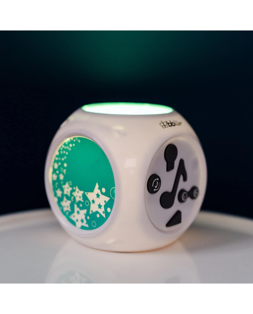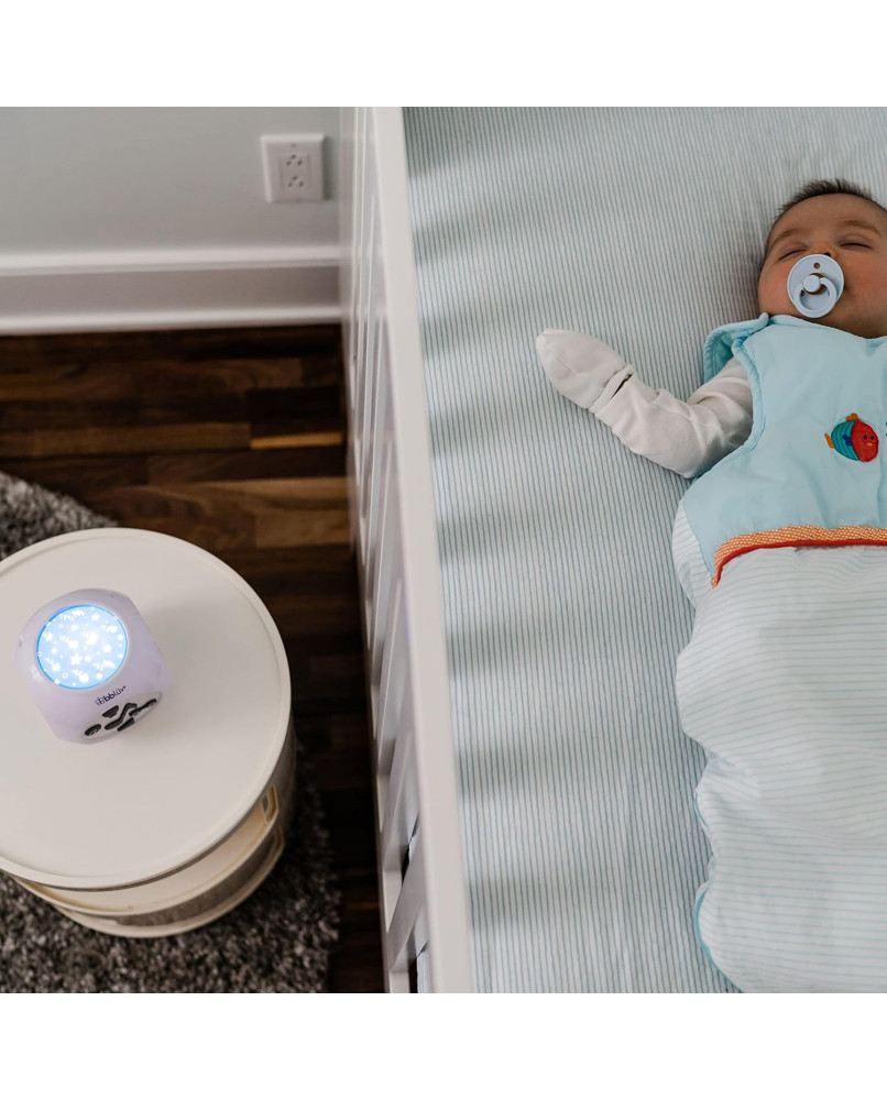 Descripción del producto Proyector musical para bebés y niños dirección 1. Enciende el dispositivo con el cable de conexión USB o 3 pilas AA. 2. Elige entre el modo proyector y el modo de canción de cuna. 3. Ajusta la configuración de sonido seleccionando entre 15 opciones de música y sonido, incluyendo canciones de cuna, sonidos de la naturaleza y un latido del corazón. 4. Controla el volumen, el bucle y la repetición con los botones designados. 5. Utiliza el sensor automático de llanto o la activación manual para música y proyección. 6. Ajusta el temporizador de apagado automático durante 30 minutos. Advertencia de seguridad Precaución: este producto no es un juguete. Mantener fuera del alcance de los niños menores de 3 años. Supervisa siempre a los niños cuando utilicen este producto. No utilizar con cable o enchufe dañado. Desenchufa de la fuente de alimentación antes de limpiar. No lo utilices si el cable o el enchufe están dañados. No utilizar al aire libre o en zonas húmedas. Para evitar daños auditivos, no lo utilices a gran volumen durante períodos prolongados. Sigue siempre las instrucciones proporcionadas con este producto.