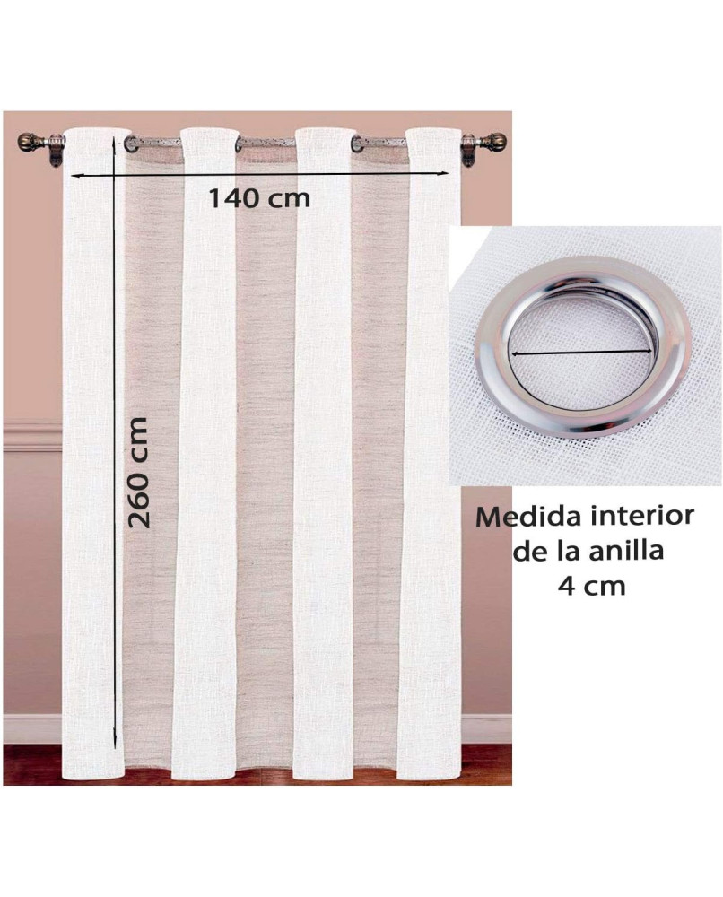 Material de Alta Calidad: Hecha de 100% poliéster, estas cortinas combinan durabilidad y elegancia. Resistentes al desgaste y a la decoloración, son perfectas para un uso prolongado manteniendo su aspecto estético.Diseño Versátil para Todo Entorno: Su estilo simple pero sofisticado las hace ideales para cualquier tipo de decoración, desde moderna hasta tradicional. Perfectas para salones, dormitorios y oficinas, añaden un toque de elegancia a cualquier espacio.Funcionalidad y Estética: No solo embellecen el espacio, sino que también funcionan como separadores de ambiente ligeros. Permiten la entrada de luz natural manteniendo la privacidad, ideal para crear un ambiente acogedor y luminoso.Fácil Manejo y Uso Cómodo: Con anillas resistentes para un deslizamiento suave, estas cortinas facilitan la apertura y el cierre, haciendo su uso diario sencillo y práctico. Ideal para quienes buscan funcionalidad sin complicaciones.Mantenimiento Sencillo: Lavables a máquina en agua fría y fáciles de planchar, estas cortinas son perfectas para quienes buscan soluciones de bajo mantenimiento. Se recomienda evitar el uso de lejía para preservar la calidad y el color a largo plazo.