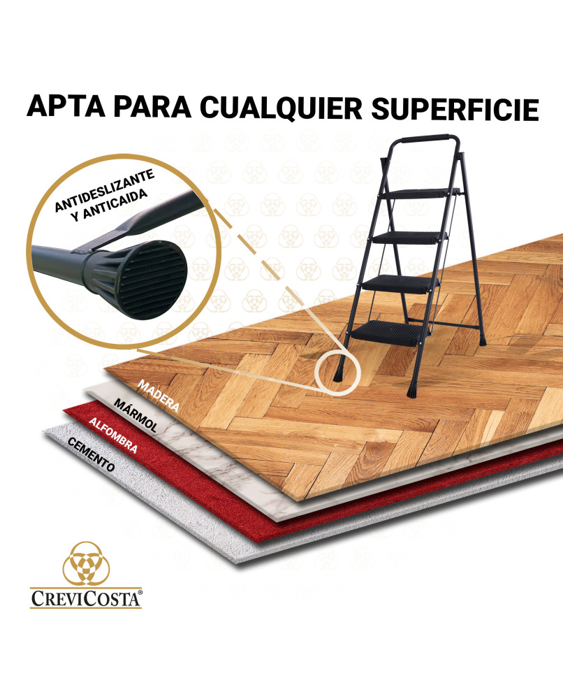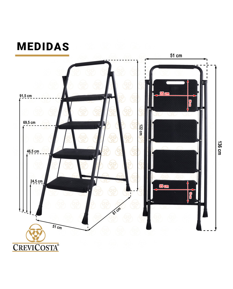 4 peldaños con superficie antideslizante para mayor seguridad.