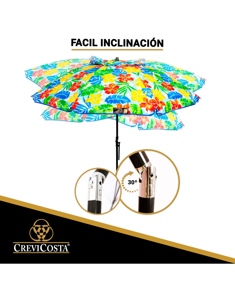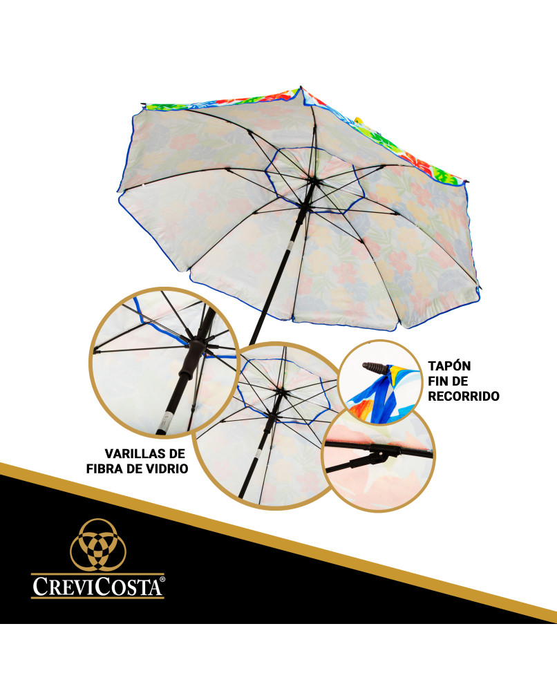 Todas estas características hacen que nuestras sombrillas sean unas de las mejores del mercado. Y para que las conserve mejor le damos un consejo de  limpieza: aplicar agua dulce (nunca salada ni agua de mar) con un trapo húmedo y jabón neutro. No usar productos abrasivos.