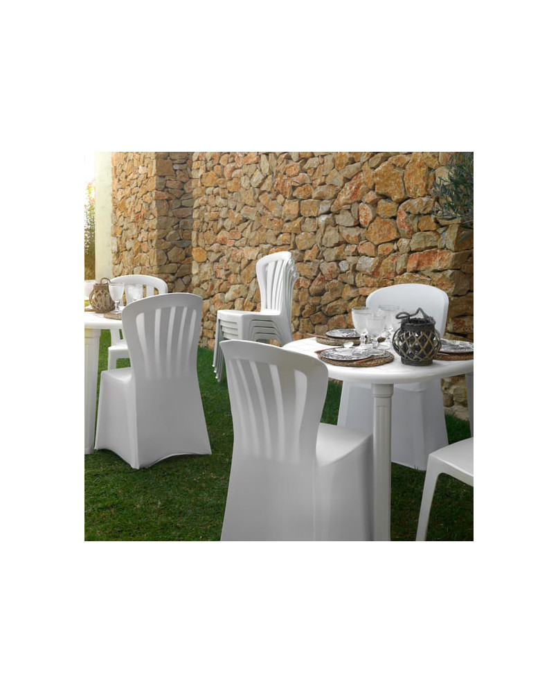 Estructura plástica de resina de polipropileno. Robusta y compacta, por lo que no requiere montaje y se puede apilar sin problemas.