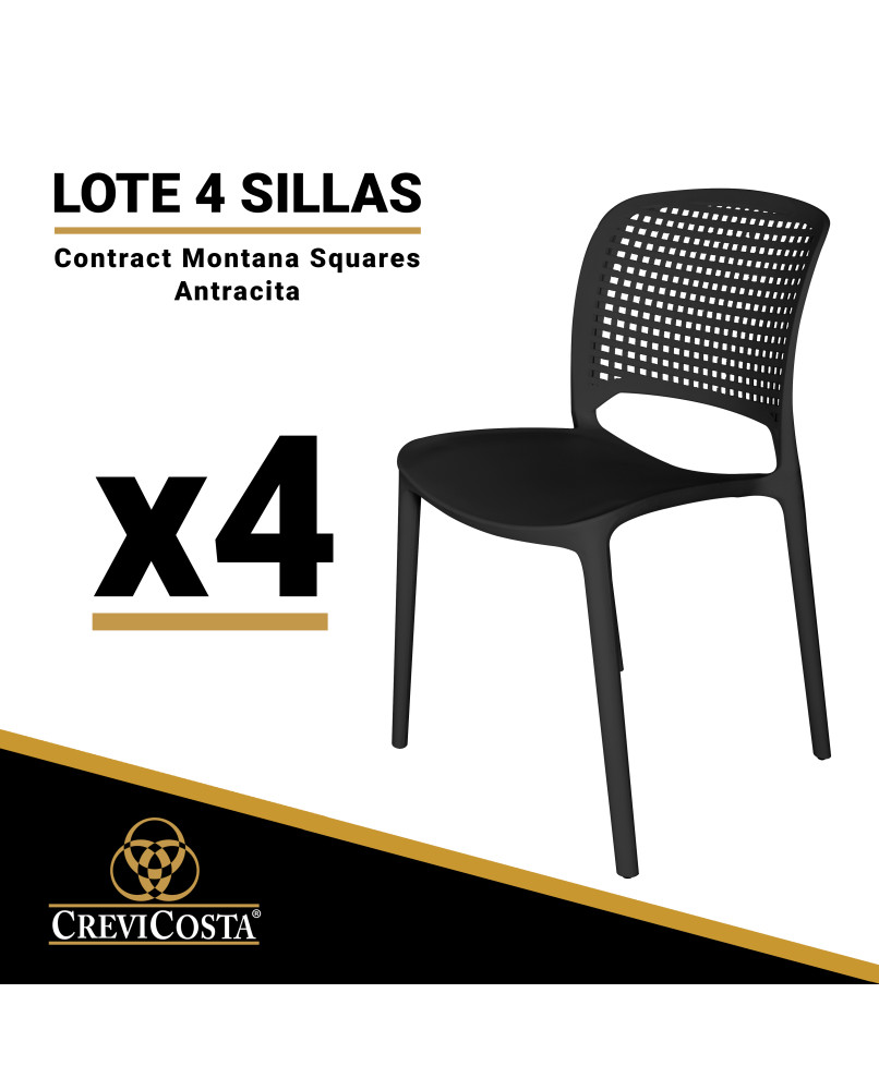 Su respaldo con patrón cuadrado le da un toque distintivo y actual, mientras que su estructura apilable facilita el almacenamiento y optimiza el espacio. Resistente al sol, la humedad y el uso intensivo, la Montana Squares es una elección profesional que se adapta a todo tipo de ambientes contract y domésticos.