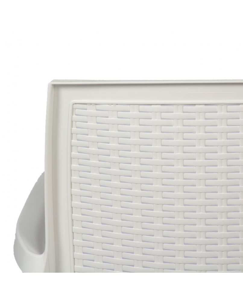 - Con un bonito acabado en imitación ratán, es muy cómoda por su amplitud y por disponer de prácticos reposabrazos que permiten relax y descanso. Fácil y ligera de transportar.