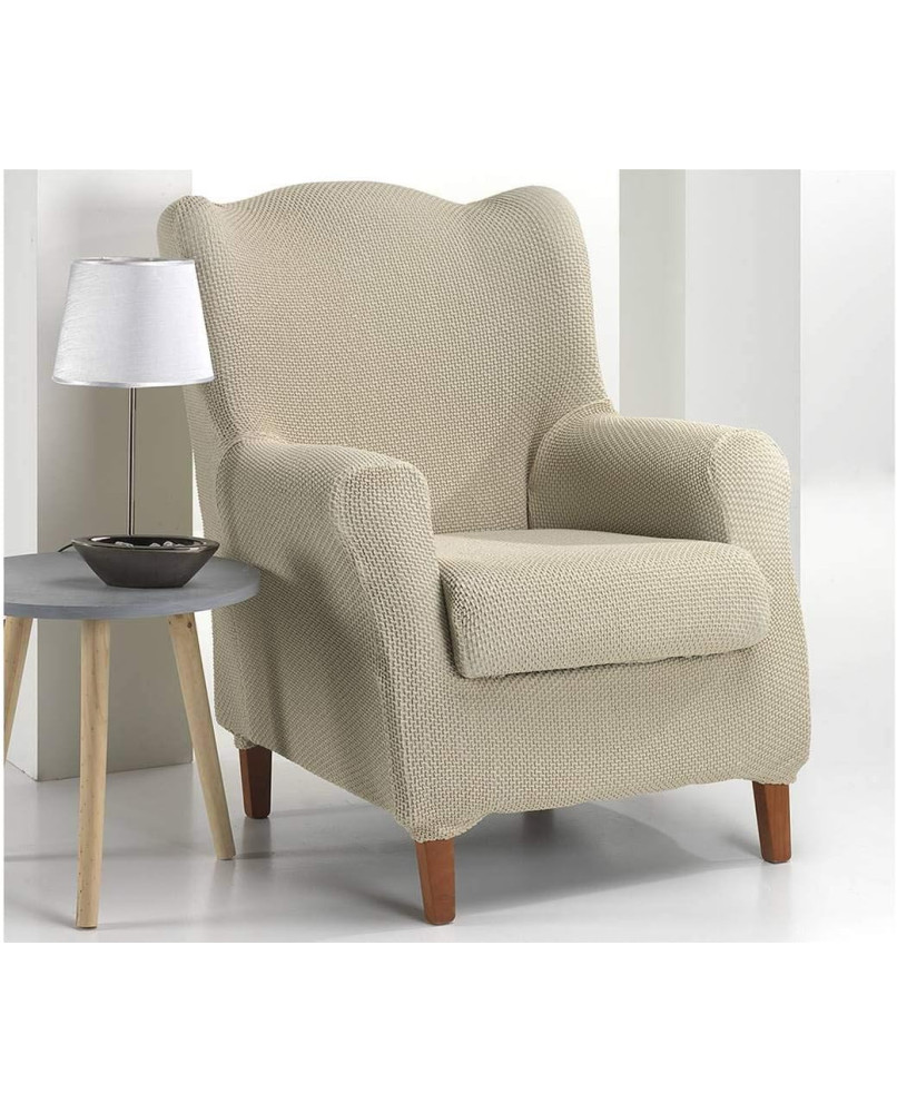 Funda de sillón orejero (70 a 110 cm de ancho)Composición: 70% Poliéster - 35% Algodón - 5% ElastómeroTejido bielástico de tacto suave elástico horizontal y vertical que se ajusta perfectamente a tu sillónPrenda en varias piezas con cojín separadoTextil del hogar lavable, de fácil colocación, protección y decoración con gran variedad de colores.
