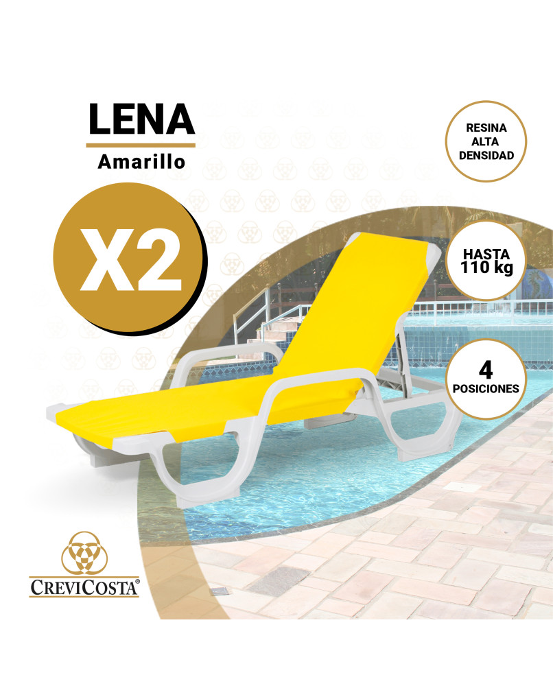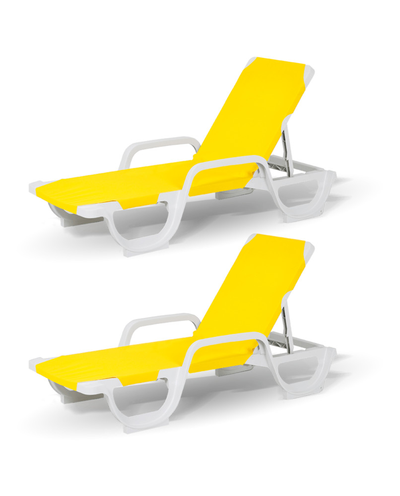 ¡OFERTA! Lote de 2 tumbonas LENA Amarillo + 1 Mesita Solid Blanca